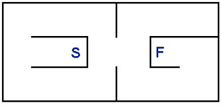 Now, the astute reader may realize that unfortunately, this method will not always lead you to the end of the maze. Even in a simple example, such as the one below, it is easy to see that regardless of whether you follow your left hand or your right hand, you will merely circle the entrance and never reach the end.